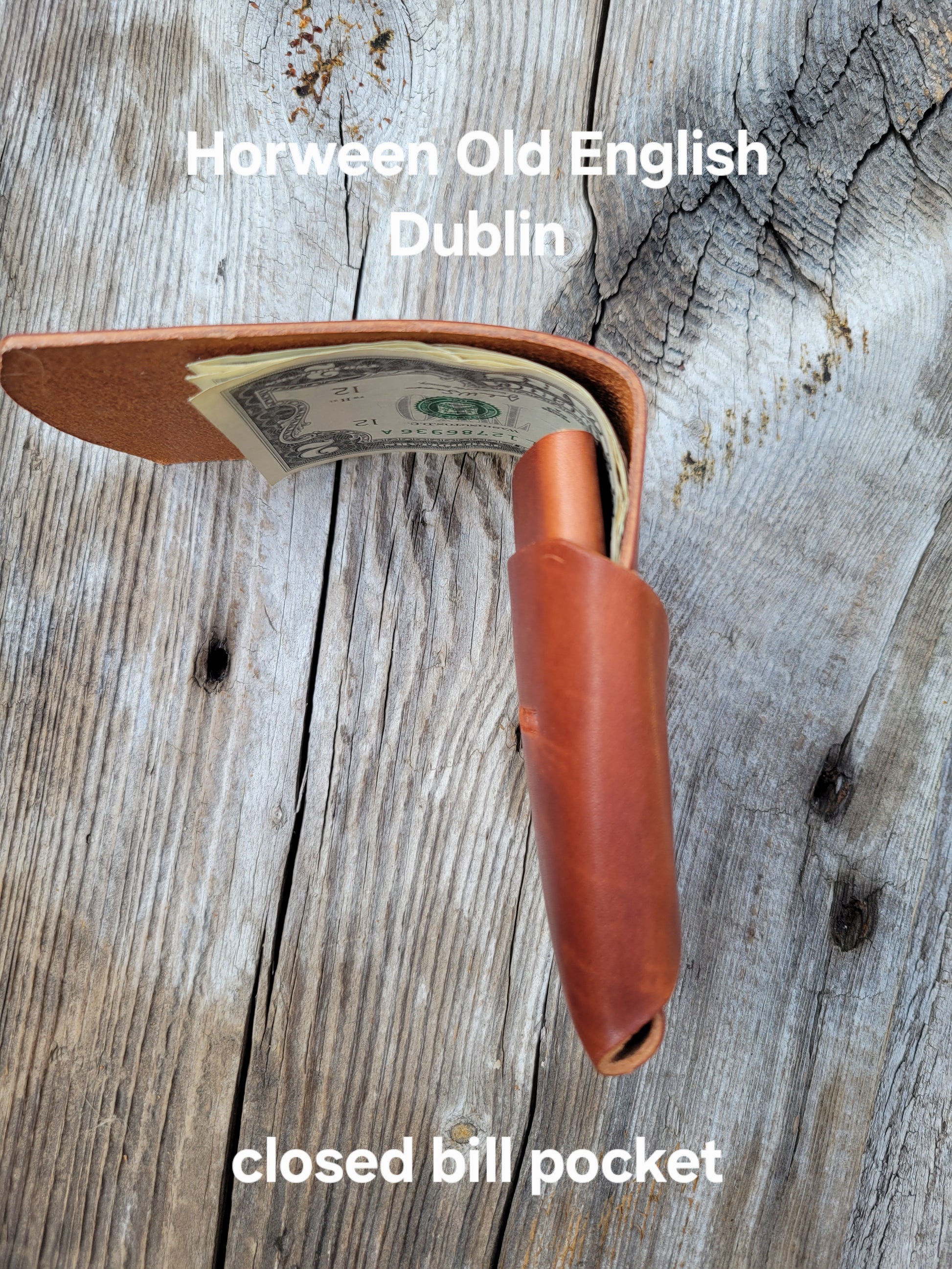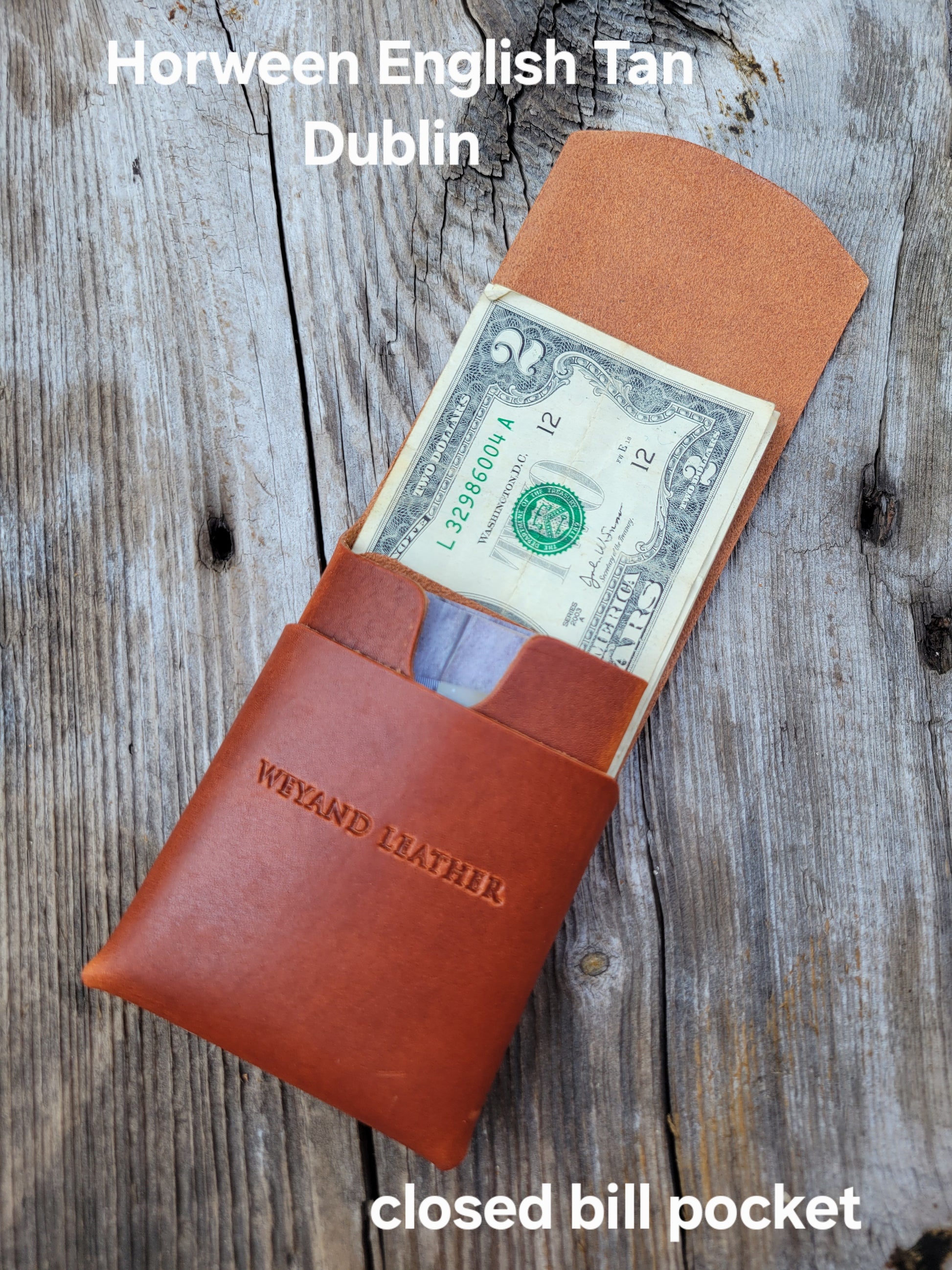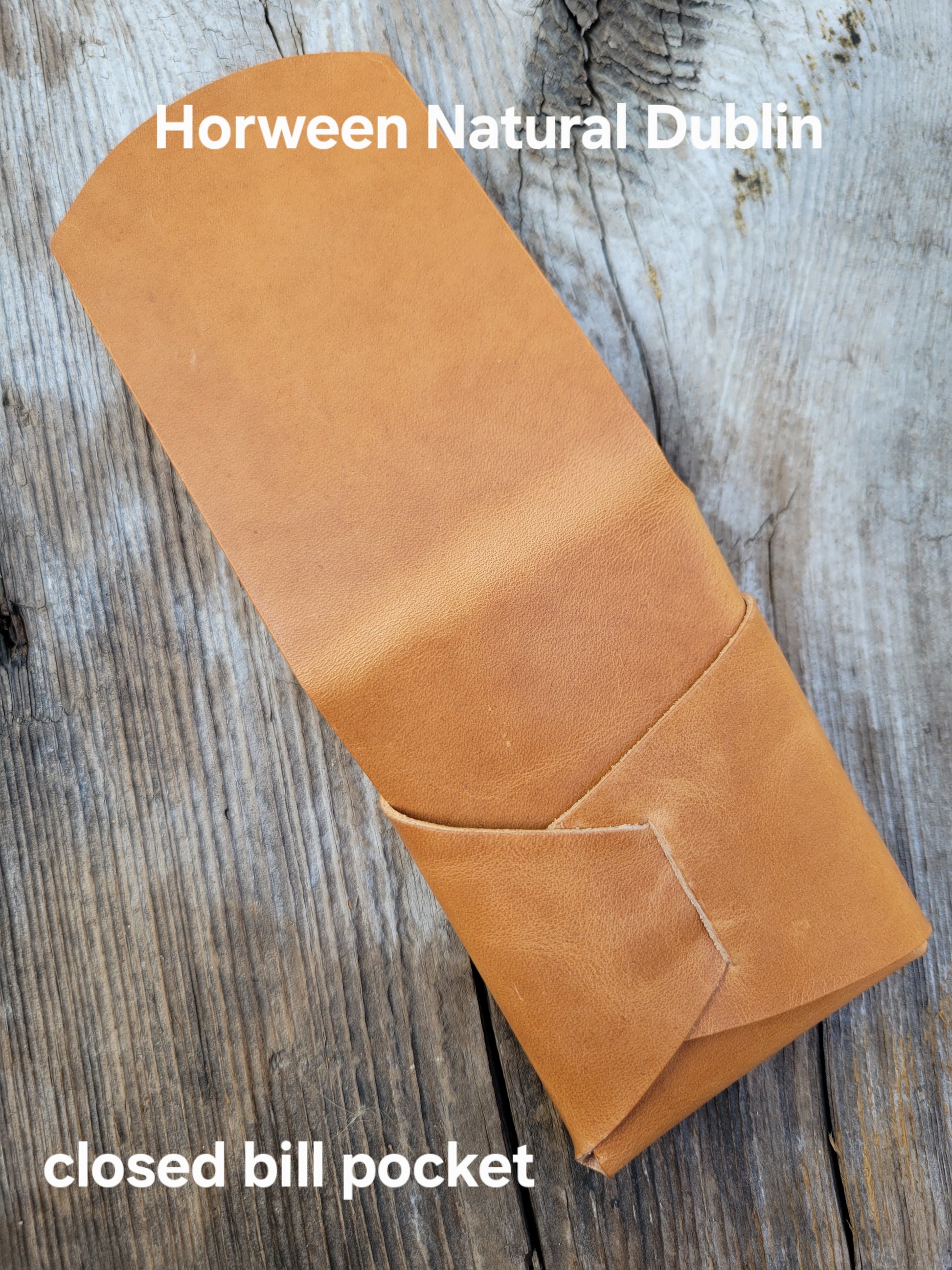 Handmade Leather Closed Bill Pocket Wallets made from the renown American-made Horween Leather. They are compact and lightweight EDC wallets designed to carry your essentials without extra bulk.